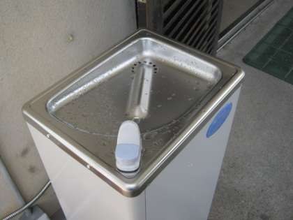 本日も気温がぐんぐん上がっています。職員室の中の温度計も23度を超えました。本日、3年生の校舎の入り口に設置してある冷水機が新しいものになりました。以前あった冷水機は衣笠中で1番古くて長い間頑張って皆さんの喉を潤してくれました。新しい冷水機は小型で洗浄機能もついています。生徒の皆さんは「大切に」使ってください。冷水機は暑い季節になると生徒が走って並び、ぶつかって故障のもとになります。大事にみんなで快適に使ってください。