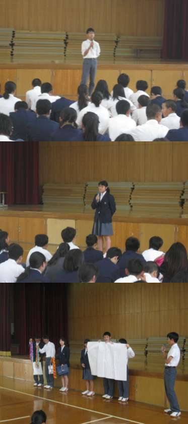 いよいよ明日から修学旅行です。旅行前の学年集会です。実行委員の司会ですべて進んでいきました、各部会からの報告と目標が順に述べられ、実行委員長が3年生に質問していくシーンもありました。とっても落ち着いた雰囲気の集会でした。今日の夜に用意をする生徒がほとんどでした。忘れ物なく、しっかりと睡眠をとって明日から最高の修学旅行にしてください!