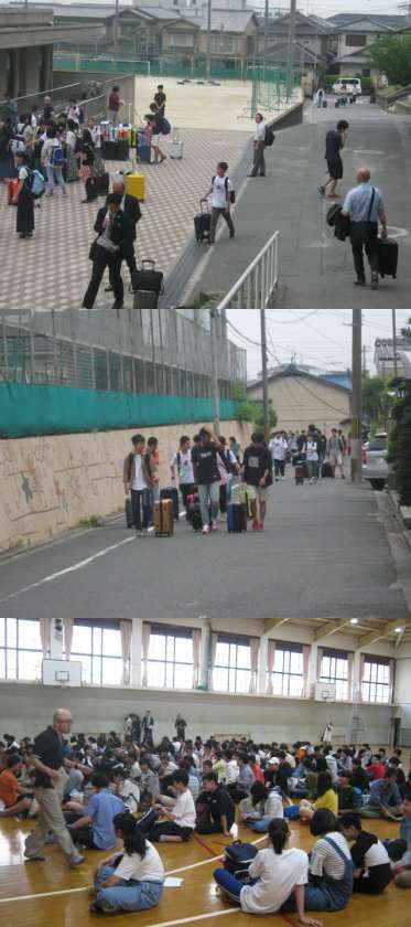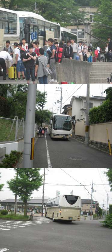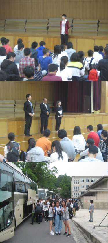 いよいよ修学旅行当日となりました。快晴とは言えません、どんよりとした曇り空です。7時30分の集合ですが早い生徒は7時前に登校してきました。7時30分には予定通り結団式が開始されました。落ち着いたムードで実行委員が進めてくれます。お世話いただく旅行業者の方・写真屋さんの紹介も行われました。その後、バスへ乗り込みます。とっても嬉しそうな笑顔です。8時00分バスは伊丹空港に向けて出発いたしました。いってらっしゃい!!