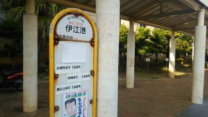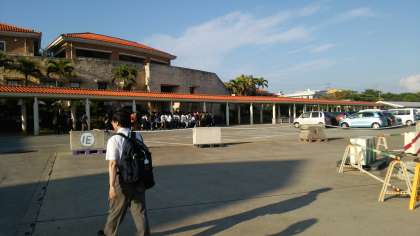 伊江島が見えてまいりました。本日の宿泊はこの伊江島の民家さんでお世話になります。港では民家さんが迎えに来て下さってます。