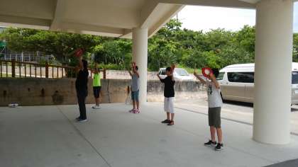 港での退村式です。