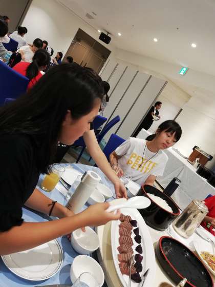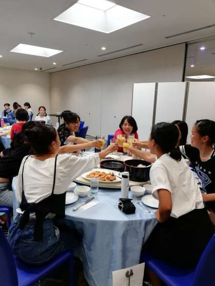 今日はクラスのみんなとテーブルを囲んでワイワイと夕食です。