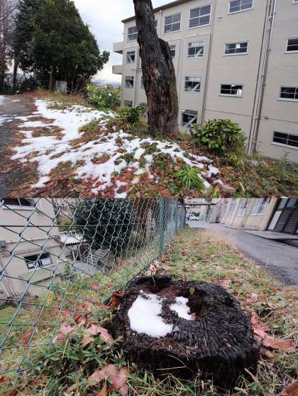 校舎の間や日陰には残っています。