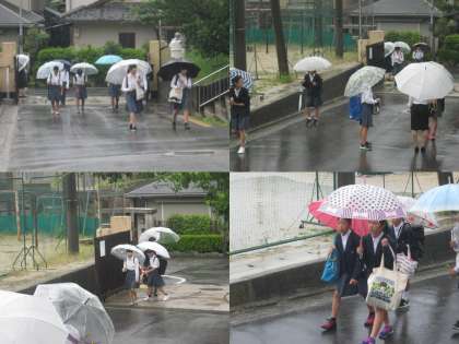 朝から激しく雨が降りました。傘をさしての登校となりました。大きなカバンが濡れている生徒もいました。登校に片道30分程度かかる生徒もいます。雨の登校は大変です。梅雨に張ったのでしょうか・・・