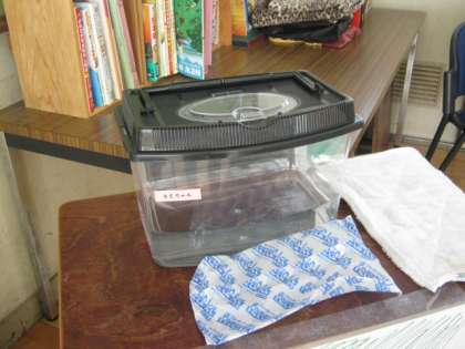 先週、集中治療を受けていましたが、元気に教室に帰ってきました。しかし、昨日も34.8の気温で、今年初めての「光化学スモッグ注意報発令」により、この気温の変化に耐えられるでしょうか心配です。