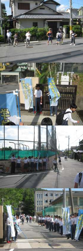衣笠中学は昨日、月曜より平常授業を再開しております。梅雨が明けを感じさせるような日差しが朝から登校中の生徒を迎えます。