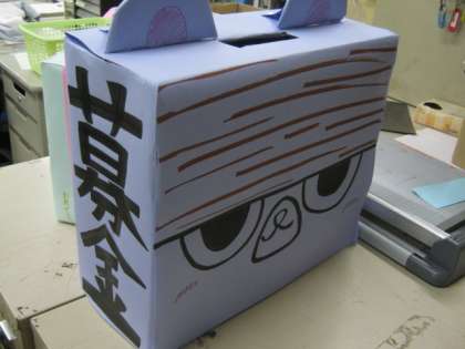 ・衣笠中学校生徒会本部役員が募金箱を持ち立ちます。