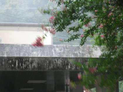 構内の木々が強い風にあおられて揺れています。7月の台風20号よりも強い感じがします。