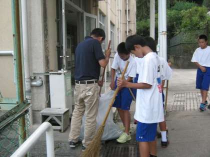 昨日の台風の影響が緑の多い衣笠中にも大変な影響を与えました。構内の通路・中庭に木の枝や葉っぱが散乱していました。放課後までに教職員が半分ほど掃き掃除をいたしました。放課後には部活動を中心にボランティアで清掃活動を行ってくれました。みんな嫌な顔一つせずに,黙々と作業をしてくれました。中には,帰る足を止めて「手伝います!!」と言って参加してくれた生徒もいます。思う言葉はただただ,「ありがとう・・・」。本当に「ありがとう・・・」。朝からのトータルでは,ゴミ袋50袋くらいの枝と落ち葉が拾われました。