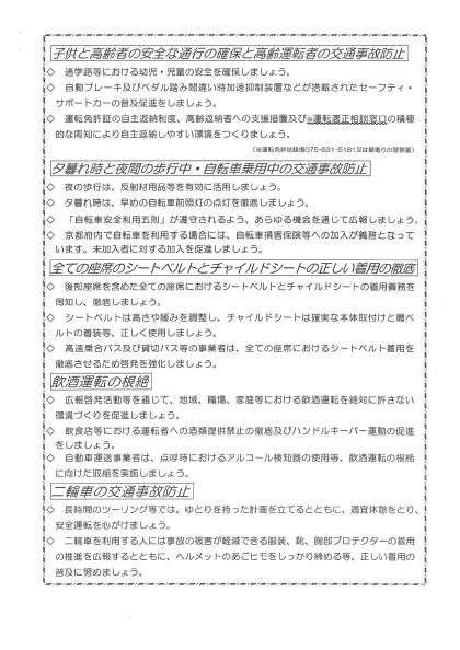 京都府の交通対策協議会から上記のご案内をいただきました。