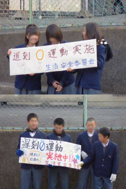 生徒会生活安全委員会では2月7日(月)まで遅刻0運動を行っています。