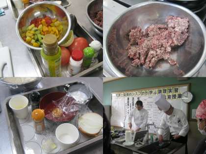 シェフの説明をしっかり聞きながら,料理のポイントをつかんでいきます。