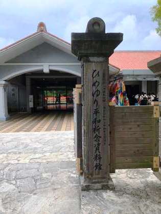 「ひめゆり平和祈念資料館」の風景です。平和の願いを込めて,京都から生徒の手で作った折鶴を持っていきました。
