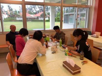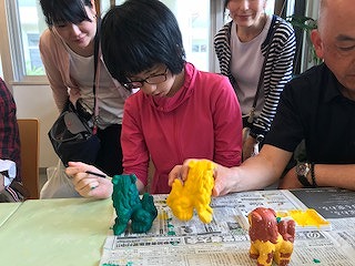 雨が降っているところもありますが,こちらはシーサーの絵付け体験です。なかなか,いい出来栄えです!!