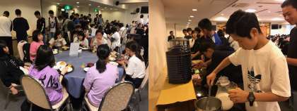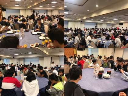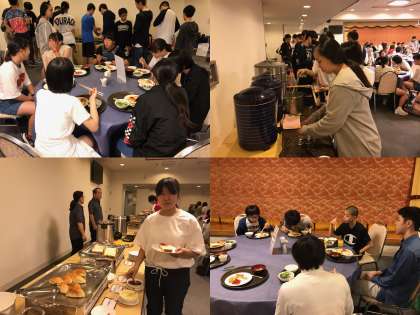 朝食の模様です、眠そうにしている生徒もいますが、元気に起床いたしました。これから朝ご飯です。