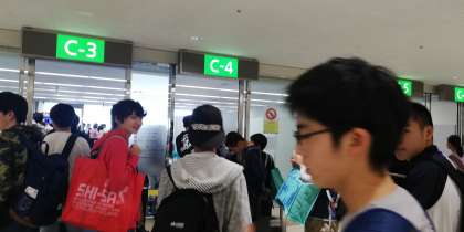 手荷物検査です。間もなく飛行機に搭乗いたします。