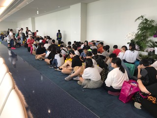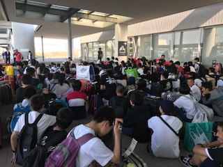 神戸空港に到着後,荷物を受け取りました。バスに乗る前に,解団式を行います。この旅行は準備に当たった,先生方だけではなく,実行委員の生徒も長期間にわたって取り組んだ成果が発揮できました。ありがとうございました。他に,旅行に付き添っていただいた旅行業者の方,思い出をカメラに収めていただいた写真屋さん,そして金武町の民家の方,那覇市のホテルの方などいろんな方のお世話になりました。皆さんに感謝でいっぱいです。