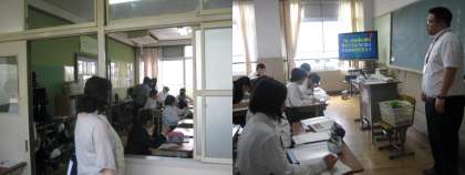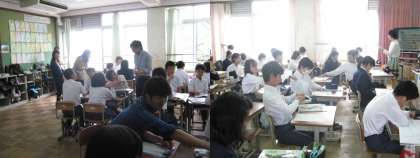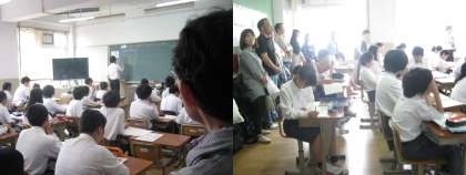 担任による道徳の授業の模様です。モニターや小道具を駆使した,楽しい授業です。そしてしっかり考え,生徒同士で意見を出し合うことで考えを深めていく授業を展開しています。