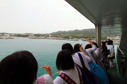 本部港を出港して、伊江島に向かっています。