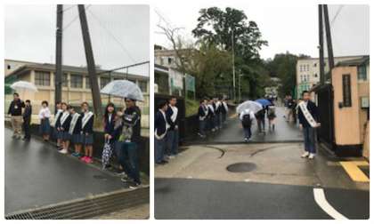 今朝は7時頃より雨が強くなりました。登校時は雨がやんでいた時間もありました。本日は生徒会選挙に立候補した生徒が,選挙運動として朝に校門で挨拶をします。少し肌寒くなってきましたが「おはようございます!!」と活気にある声が響きました。