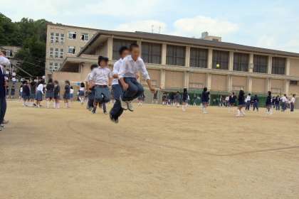 楽しそうに大縄飛びをしているのを他の学年やクラスの人も見ていました。
