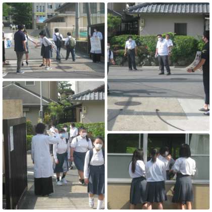 朝から強い日差しが照り付けます。時間差分散登校2日目です。本日は名簿偶数生徒が午前登校で,名簿奇数生徒が午後登校となります。今週の木曜日までが交互に登校します。