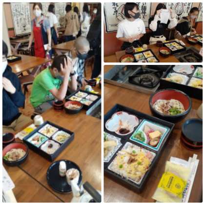 昼食はもちろん「讃岐うどん」です。とてもおいしそうです。