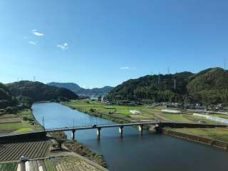 高知の車窓より。鏡川と呼ばれるところです。この辺りは和紙の産地だそうです。とても素敵な景色です!