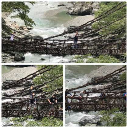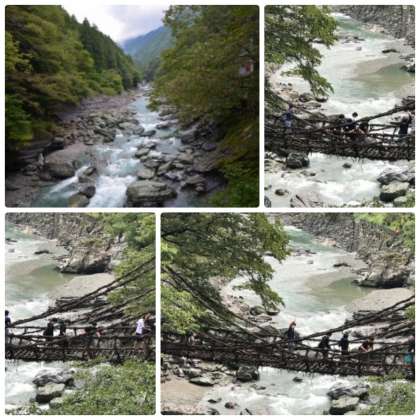 いよいよ体験学習がスタートしたようです。まずは祖谷のかずら橋です。先生からのコメントは「めちゃくちゃこわかったです…」でした。