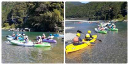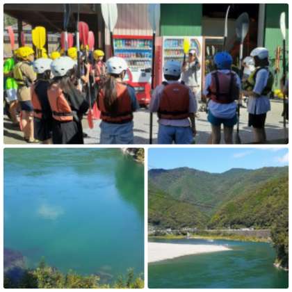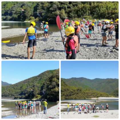 続いて,仁淀川でのクラウドカヌー体験の様子です。校長先生からのコメント「抜群の透明度」でした。画像からも分かるほどの透明度!