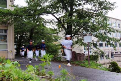 試合を控えた部活動は、「風にも負けず、雨にも負けず」練習をしています。