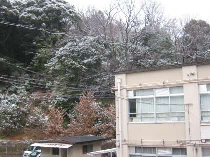 昨日は朝と夜に雪が降りました。衣笠山にも雪が残っています。もうすぐ3月とは思えない気温ですが,生徒は元気に登校してきます。