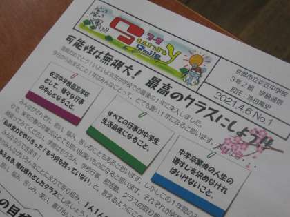 引き続き3年生の学級の様子です。工夫を凝らした学級通信・第1号を発行しているクラスもありました。