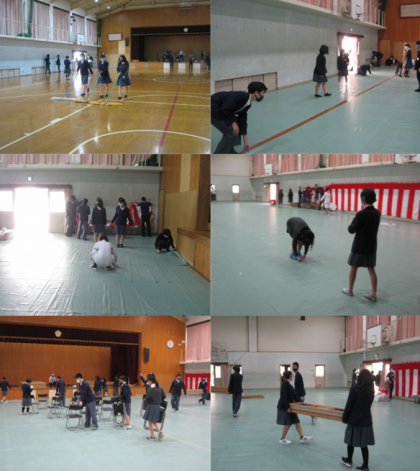 本日放課後に4月7日(水)に行われる入学式の準備を行いました。2,3年生の代専委員の人たちが準備してくれました。2年生は清掃を、3年生は体育館内の準備をしてくれました。大変手際よく準備をしてくれました。2,3年生の代専委員の皆さんありがとうございました。