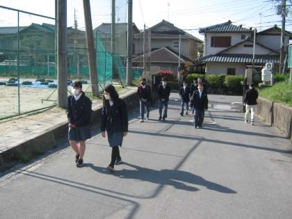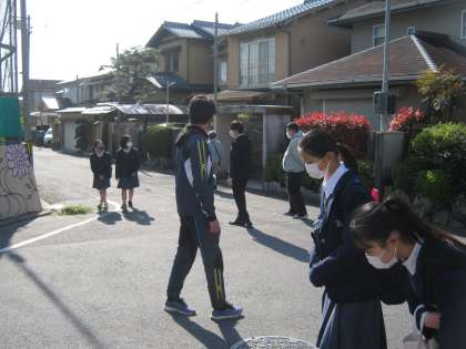 爽やかな朝となりました。登校してきた1年も可愛らしく「おはようございます」とあいさつをします。正門の前には,先生が挨拶に出ています。気持ちのいい一日がスタートします。