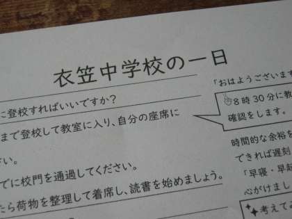 1−2です。衣笠中の一日というテーマで学校生活を解説していきます。