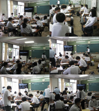 昨日に引き続き3限と4限に教育実習生による研究授業が行われました。3限は国語で「俳句を味わう」という単元でした。自分の選んだ俳句の紹介文(鑑賞文)を考え、班の人たちと意見の交流を行いました。4限は英語で「Learning Science in English」という単元でした。能動態と受動態の性質を学習しました。今週の金曜で教育実習が終わります。残り2日です頑張って下さい。