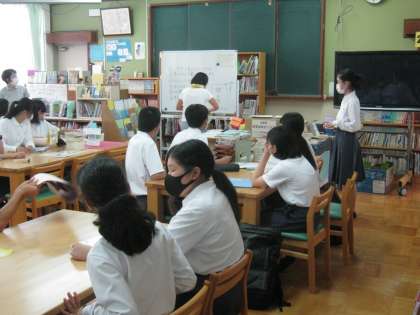本日,代議専門委員会が行われました。夏休みの取り組みも専門委員会で検討されました。写真は図書委員会の活動の様子です。本の整理やポスター掲示の取り組みなどが話し合われました。委員長さんが大活躍の様子でした。