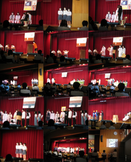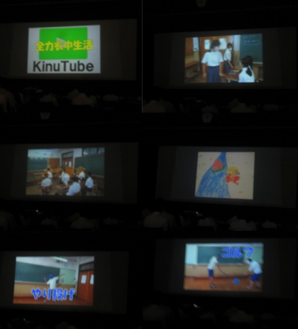 開会のあいさつとミュージックビデオ,1年生の映像2ねん「Kinu-Tube」とKinu-Tube2年生の劇「SDG's研究所」の様子です。