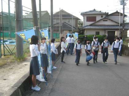 週が明けての月曜日です。本部の挨拶運動は続きます。
