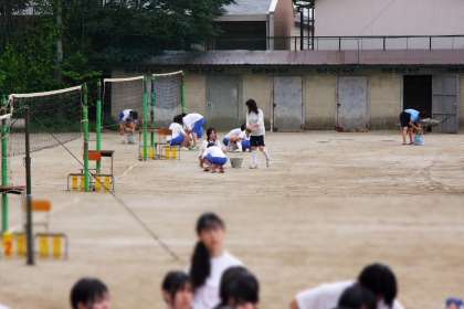 開会式の途中で雨が強く降り出したため中断し、水取を行った上で球技大会が始まりました。