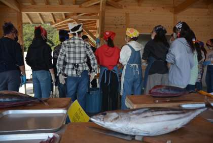 カツオのたたき体験がスタートしました。