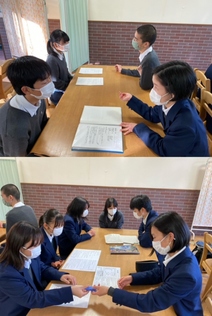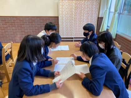認証式の後、ランチルームで生徒会本部役員の新旧引き継ぎが行われました。それぞれの現委員長から新委員長に必要な資料と共に活動内容の詳しい説明がありました。いよいよ衣中の伝統が引き継がれます。その様子です。