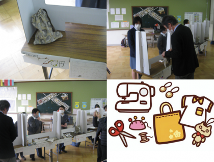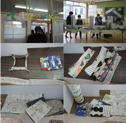 本日5限学活で、11組ではすてきなハンドメイド店を行いました。家庭科の授業でミシンなどを使い作ったお箸入れやランチョンマット、巾着袋などを店頭に並べ販売しました。9組・10組の生徒がおもちゃのお金で、それらを購入していました。校長先生も参加されました。大盛況でした。