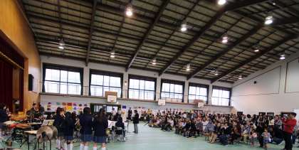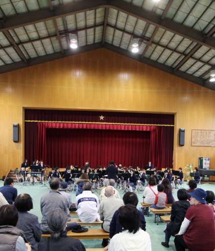 あいにくの天候のため翔鸞小学校の体育館での演奏になりました。