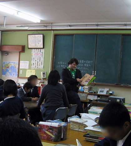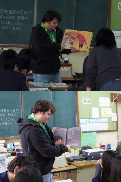 昼休み、図書館の開館のときにALTのセバスチャン先生による、