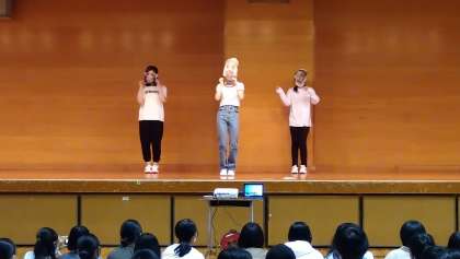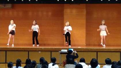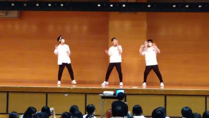 高知市体育館での学年レクリエーションです。生徒会の皆さんによるオープニングの様子です。