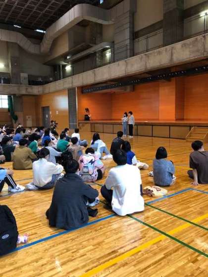 レクリエーションの開会式の様子です。生徒の皆さん頑張っています。