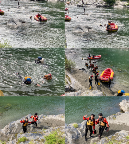 今,ラフティングの画像とべんがらぞめの画像が送られてきましたので,レクリエーションの間にはさませてもらいます。
