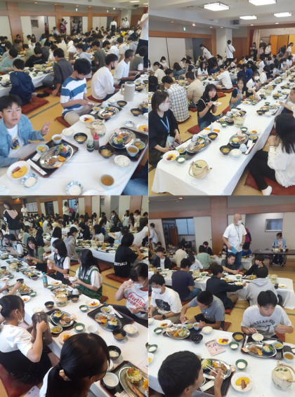 修学旅行3日目最終日です。あっという間の3日間。本日向かう香川県市の最高気温30度,天気は晴れ。朝食の様子です。ホテルでの食事もこれが最後となります。今日はうどん打ち体験,四国水族館の見学を行います。熱中症に気を付けて,最終日の香川県をしっかりと楽しんでほしいと思います。